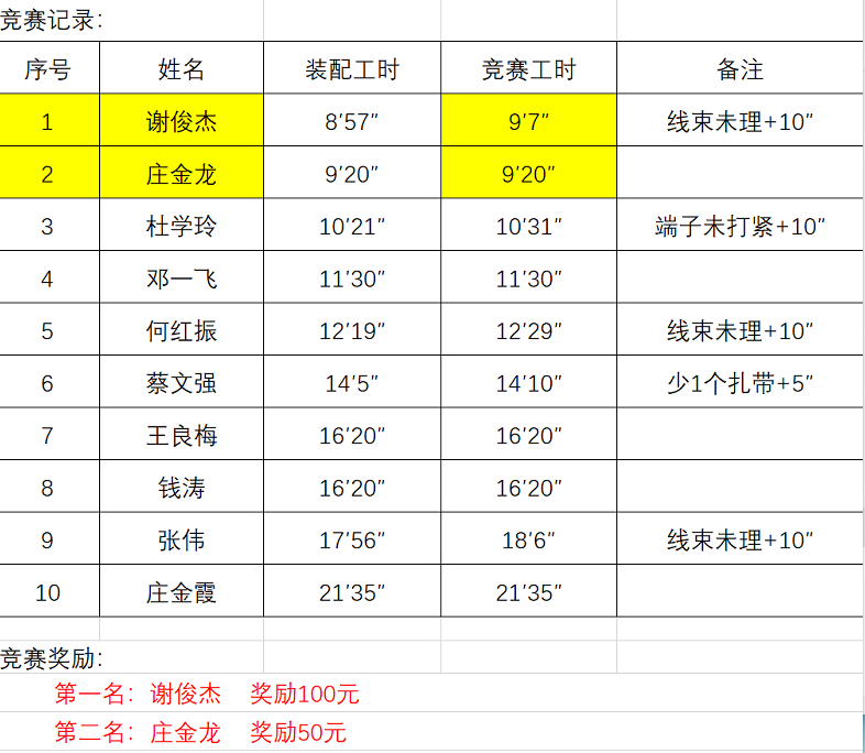 為激發(fā)和調(diào)動全體員工的工作積極性和創(chuàng)造性,形成”比、學(xué)、趕、幫、超”的大環(huán)境,本月25日組織進(jìn)行工頻充電機(jī)的裝配技能競賽。1小時的競賽比拼活動,最終圓滿結(jié)束。在本次競賽中,全體參賽人員表現(xiàn)出高昂的競賽激情,你追我趕,最終,每個人都100%完成產(chǎn)品的競賽裝配工作,為本次技能競賽交了一份完美的答卷,為他們競賽態(tài)度與技能點(diǎn)贊。其中,制造部的謝俊杰與莊金龍,在本次競賽中,不負(fù)眾望,分別拿下第一名、第二名,讓我們一起為他們喝彩。