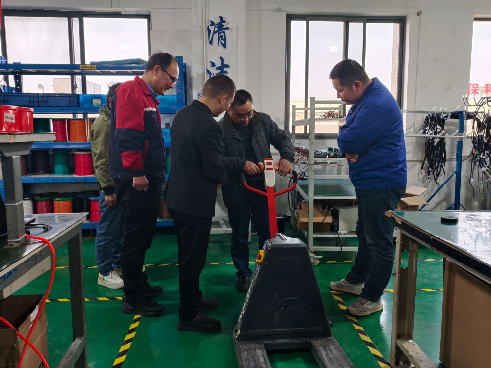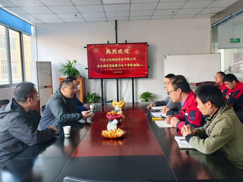2025年3月10日14點30分,寧波力達(dá)物流設(shè)備有限公司曾總一行蒞臨我司參觀。在我司總經(jīng)理汪如有、技術(shù)總工朱林等人的陪同下,曾總一行參觀了我司生產(chǎn)線,并給出專業(yè)建議,隨后雙方就相關(guān)合作進(jìn)行了友好會談!